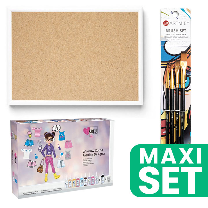 Für alle kreativen Enthusiasten, professionelle Künstler, Kunststudenten oder einfach nur Gelegenheits-Kreative haben wir spezielle Kombinations-Sets zusammengestellt, die alles enthalten, was Sie brauchen, um Ihr künstlerisches Talent voll zu entfalten. Unsere preisgünstigen Sets sind sorgfältig aus unseren beliebtesten und hochwertigsten Produkten zusammengestellt. Egal, ob Sie sich für Malen auf Leinwand, Aquarellieren, Zeichnen oder andere Kunsttechniken interessieren. Unser Angebot umfasst eine Vielzahl von Sets, die sich ideal als Geschenk für Ihre Lieben oder als komplettes Einsteigerpaket für Sie selbst eignen. Mit diesen Sets können Sie sicher sein, dass Sie qualitativ hochwertige Produkte verwenden, mit denen Sie professionelle Ergebnisse erzielen können. Wählen Sie aus unserem Angebot an vergünstigten Sets und tauchen Sie mit unseren bewährten und beliebten Produkten in die Welt der Kreativität ein. Lassen Sie sich inspirieren und schaffen Sie Werke, auf die Sie stolz sein werden! In diesem Set finden Sie das KREUL Fashion Designer Glasmalerset, ARTMIE Synthetikpinsel-Set, weißer Metallrahmen mit Plexiglas 29,7 x 42 cm.