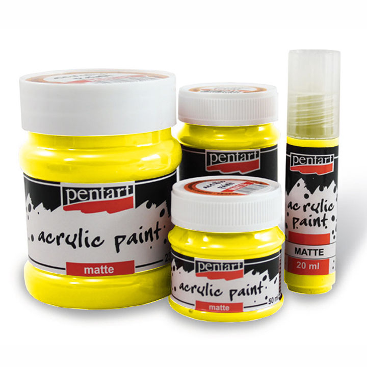Die Acrylfarbe der Marke PENTART ist auf Wasserbasis hergestellt, hat eine matte Oberfläche und kann mit Wasser verdünnt werden. Sie bietet eine breite Farbpalette. Diese Farbe hat eine hohe Deckkraft und bleibt nach dem Trocknen wasserfest. Sie ist ideal für Oberflächen wie Holz, Papier, Stein, Leinwand, Terrakotta, Putz, Styropor und mehr. Inhalt: 230 ml. Erhältlich in 28 Farbnuancen.